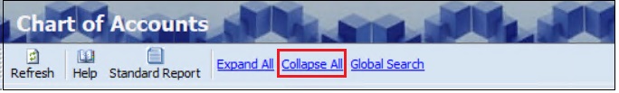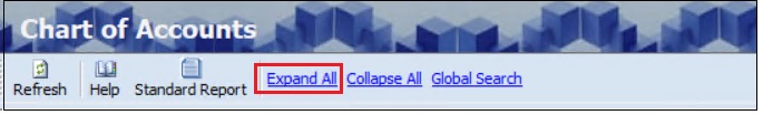 The Expand All link allows the user to view the full account hierarchy at once. It shows all accounts, sub-accounts, and their details, making it easier to navigate, manage accounts, and get a complete overview.