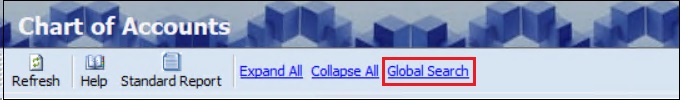 The Chart of Accounts screen is divided into two sections as mentioned below.